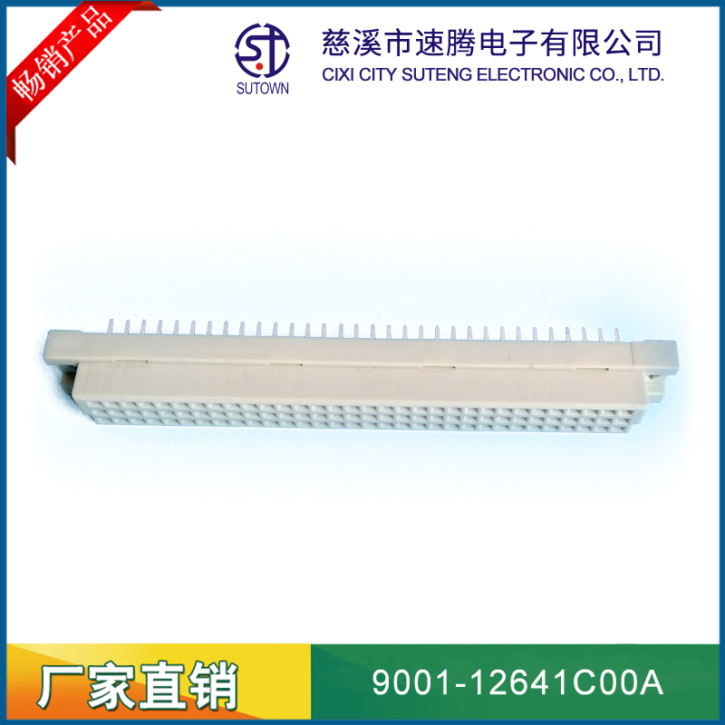 品名:歐式插座連接器型號:9001-12641C00A 規格:64pin屬性:彎針公座 備注:中間排1排間距:2.54間距
